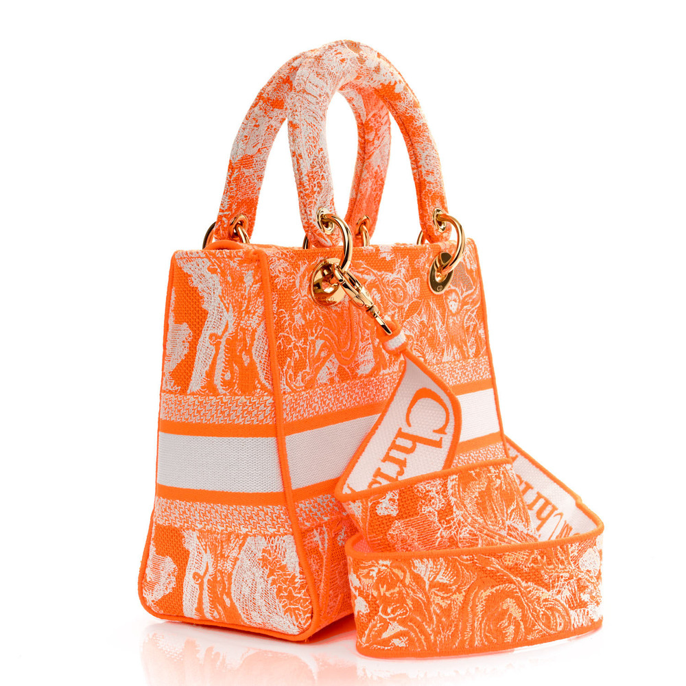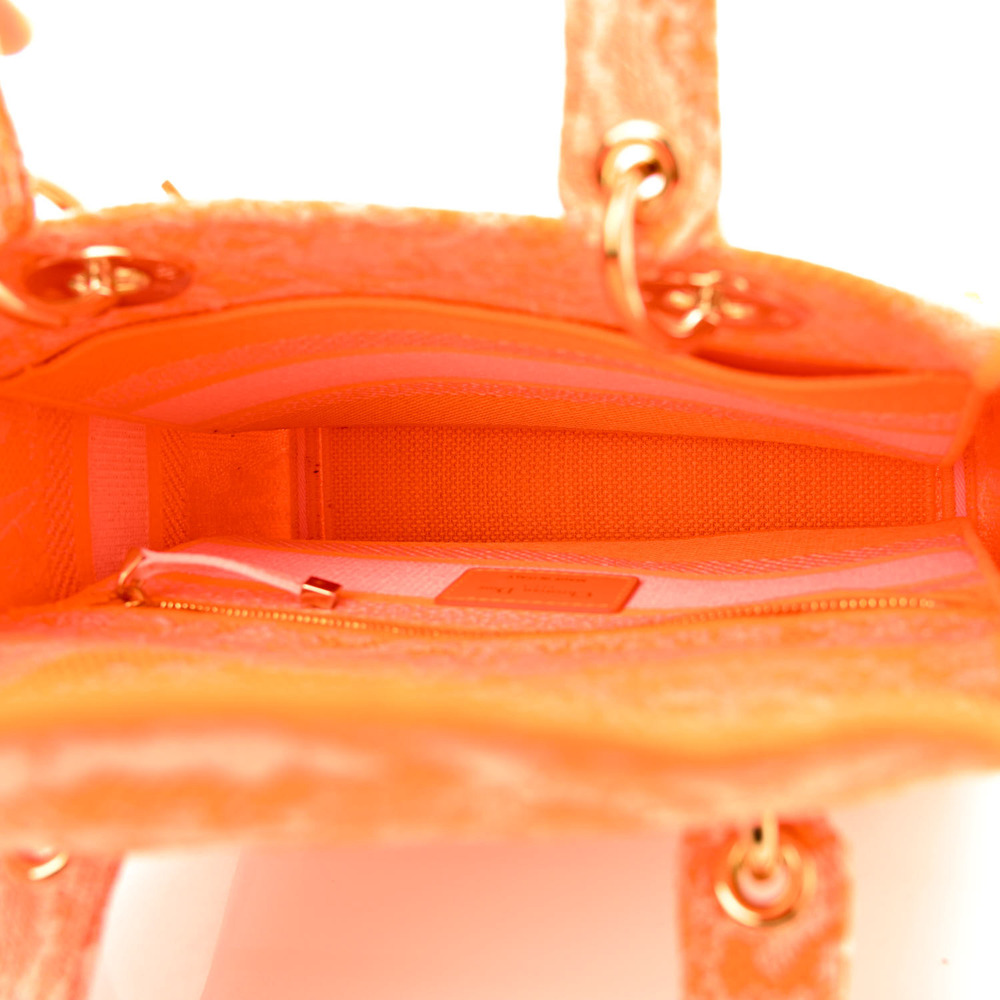 Dior De Jouy Reverse Embroidered Lady D-Lite Bag Fluorescent Orange