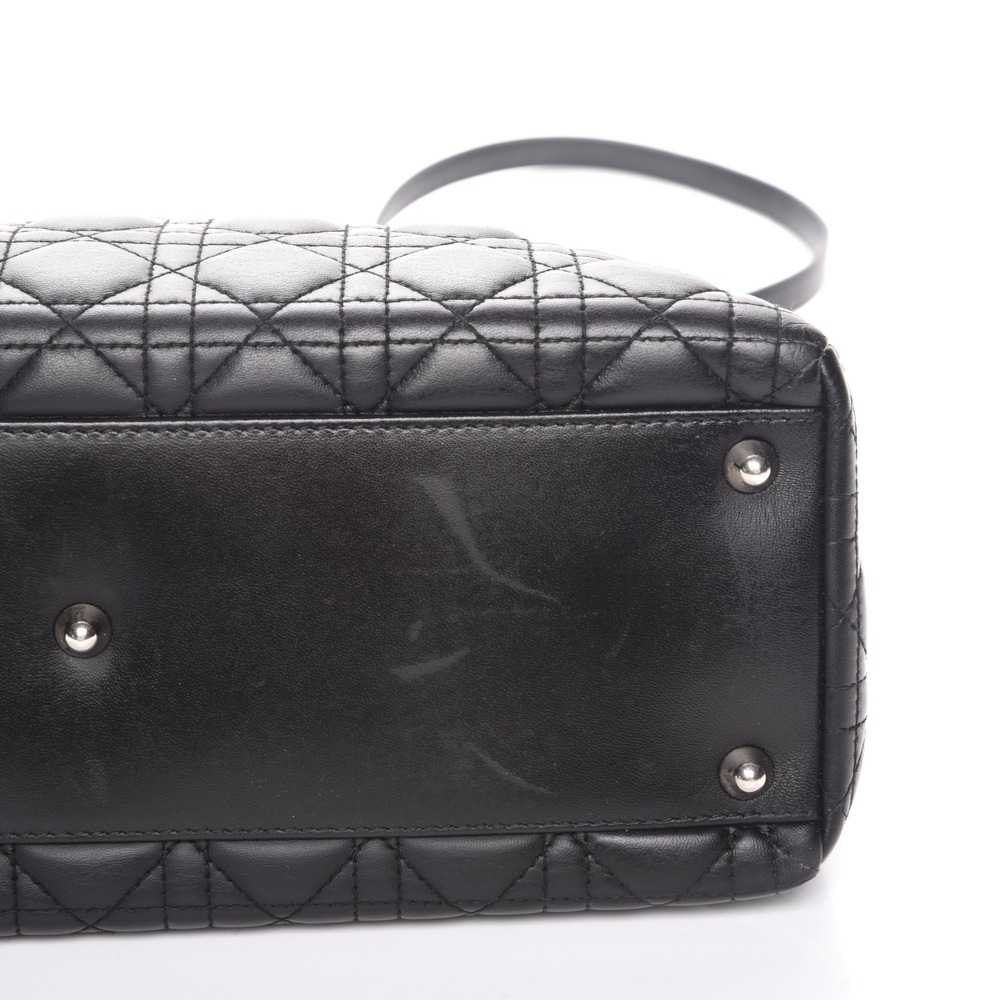 The Lady Dior bag embodies Dior’s vision of elegance and beauty. Refined and sleek, the timeless style is crafted in sand pink lambskin with Cannage stitching, creating the instantly recognizable quilted texture. Pale gold-finish metal D.I.O.R. charms offer elegant appeal. Featuring a removable thin leather shoulder strap, the large Lady Dior bag can be carried by hand or worn crossbody.