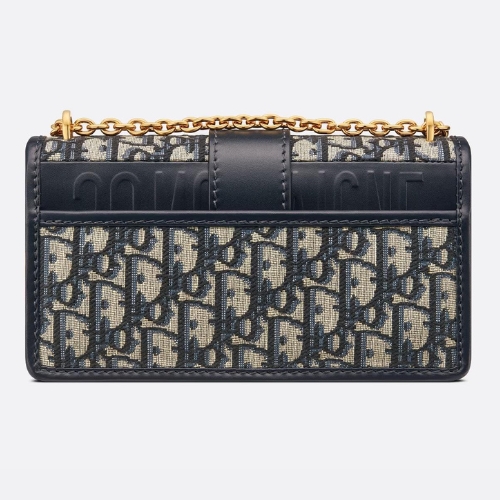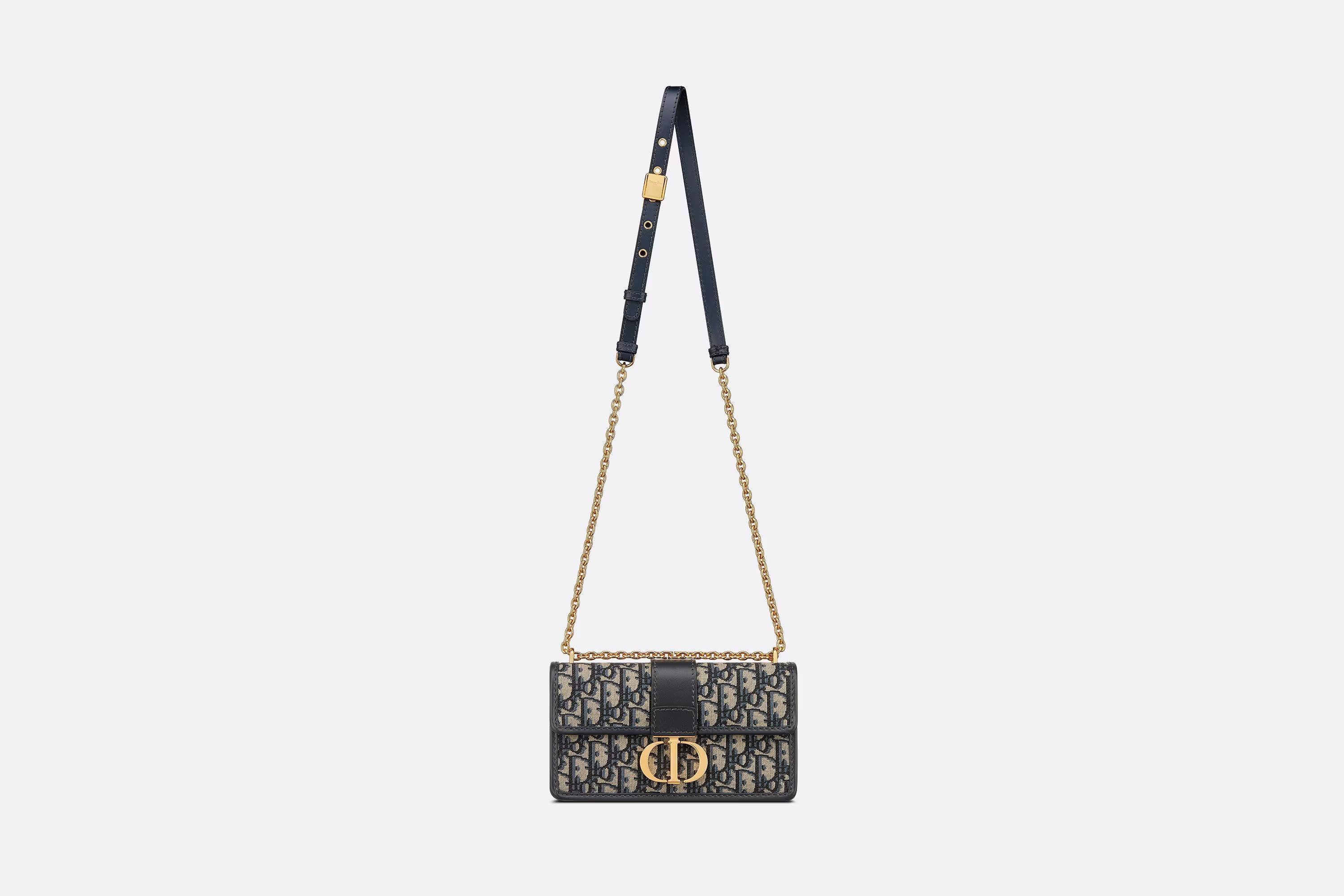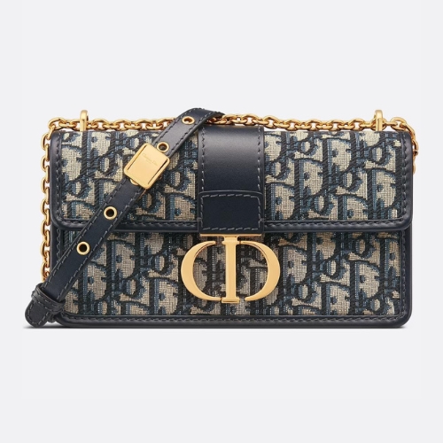 The East-West bag with chain enhances the 30 Montaigne line with a timeless and elegant design. The bag is crafted in blue jacquard and highlights the House’s hallmark Dior Oblique motif. The flap has an antique gold-finish metal CD clasp, inspired by the seal of a Christian Dior perfume bottle.