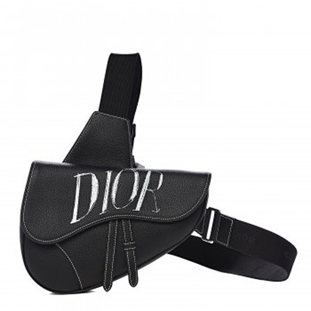 Christian Dior Grained Calfskin Logo Saddle Messenger Bag