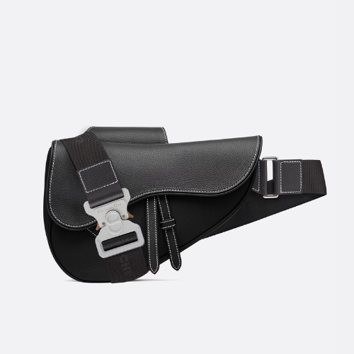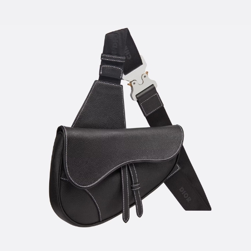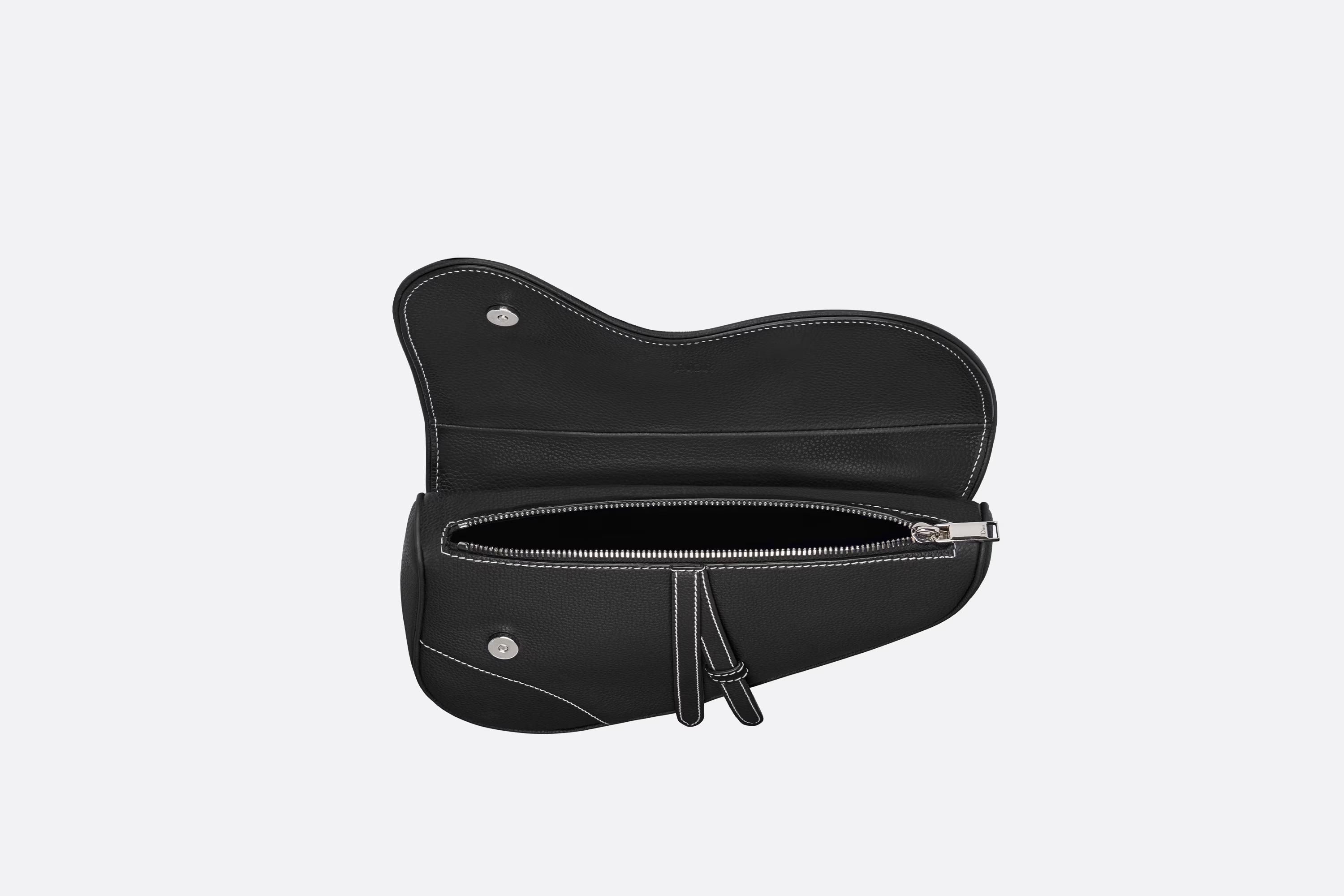 The Saddle bag is the newest variation of the House classic. Made in black grained calfskin, it is embellished with white topstitching for an elegant contrast and features an iconic magnetic flap concealing a zip pocket to safely store all the essentials. The adjustable Christian Dior jacquard shoulder strap allows the bag to be worn over the shoulder or crossbody.