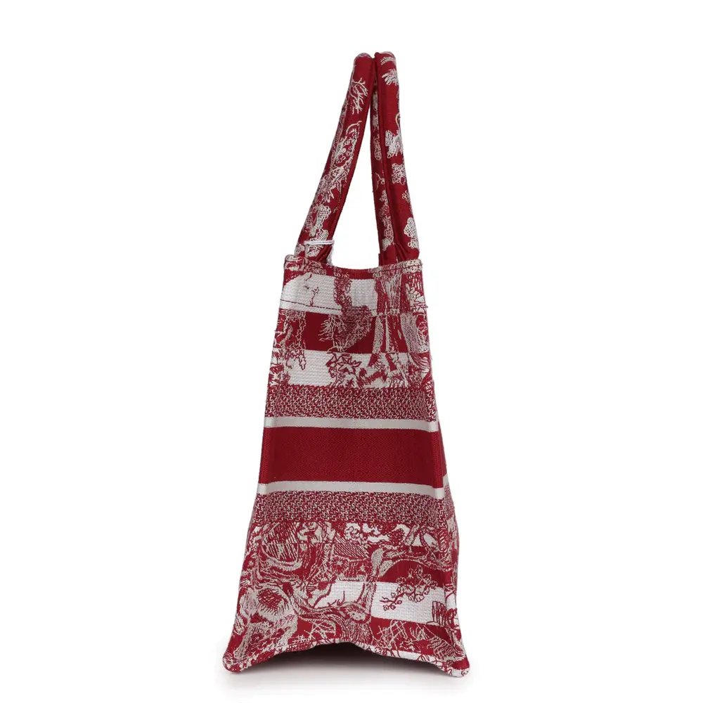 Dior Canvas Embroidered Voyage Book Tote Celestial Red Large