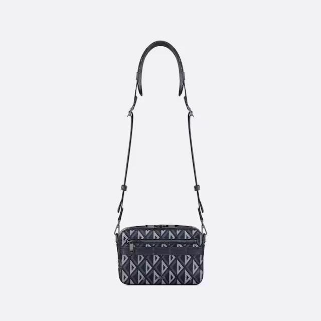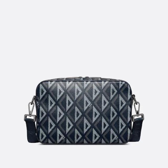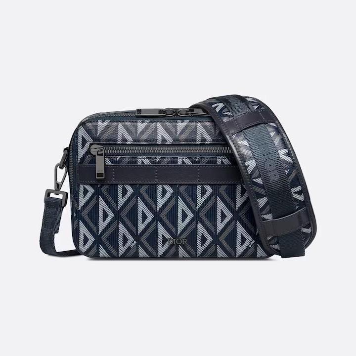 The Safari bag with strap is a practical and compact style and can be carried daily. Crafted in navy blue CD Diamond canvas inspired by House archives, it is embellished with tonal smooth calfskin details. The zipped compartment and the front pocket keep the essentials within reach, while the adjustable Christian Dior shoulder strap allows it to be worn over the shoulder or crossbody.