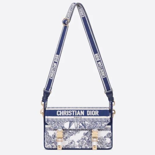 Maria Grazia Chiuri has updated the classic messenger bag by adding signature Dior details for a relaxed and modern look. Fully embroidered with the blue Dior Oblique motif, the bag is enhanced by a Christian Dior Paris signature flap, as well as sportswear-inspired CD buckles. Equipped with an adjustable and removable shoulder strap, the small, compact messenger bag can be worn over the shoulder or crossbody, and will make an ideal urban companion.