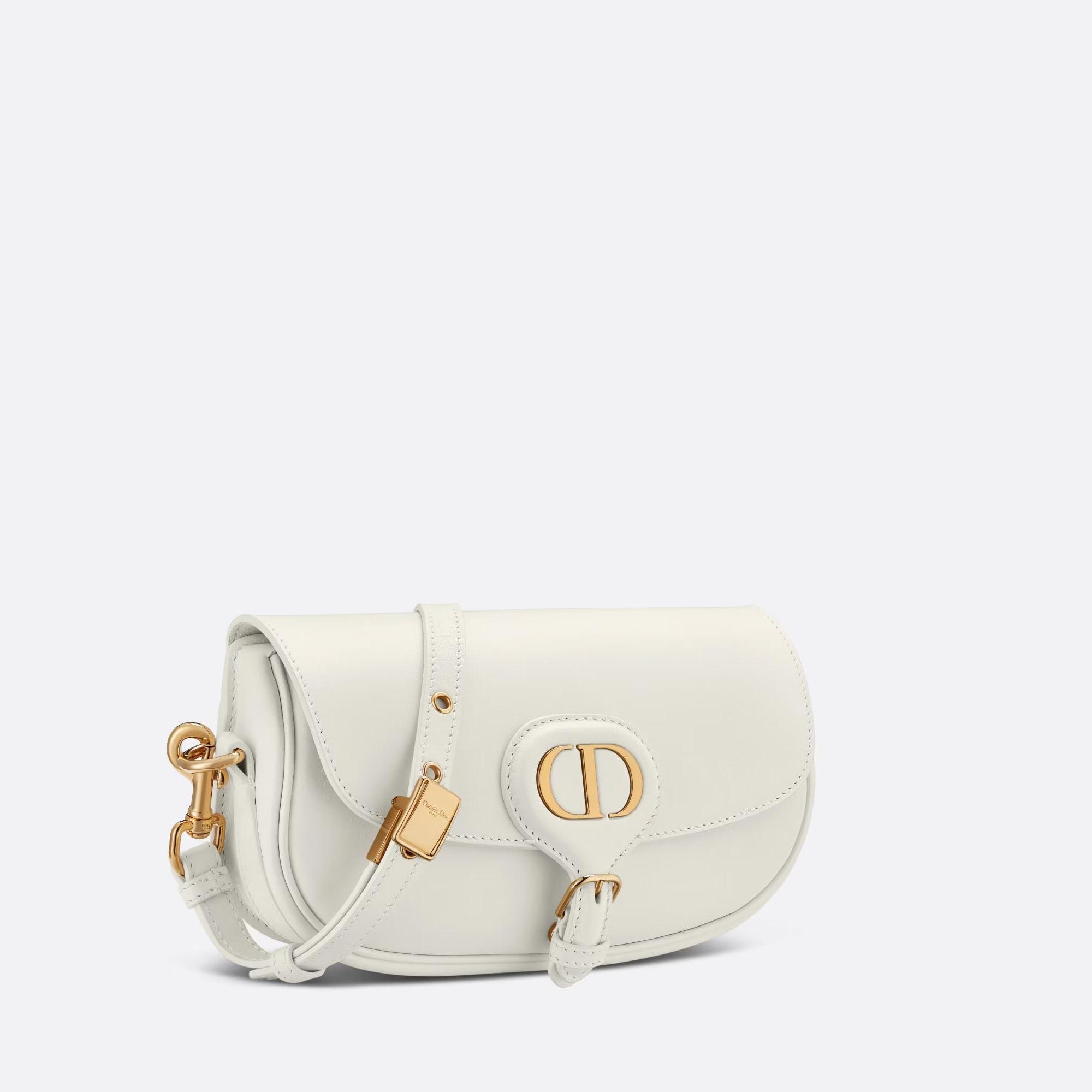 New this season, the Dior Bobby East-West bag modernizes the allure of the Hobo silhouette through elegant lines and harmonious proportions. The latte box calfskin style features a suede calfskin interior for added suppleness as well as antique gold-finish metal hardware. Adorned with a removable, adjustable sliding shoulder strap with a military-inspired buckle