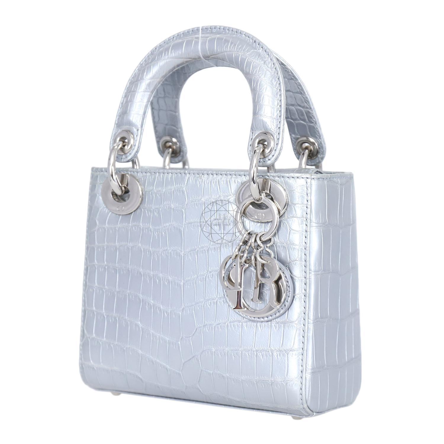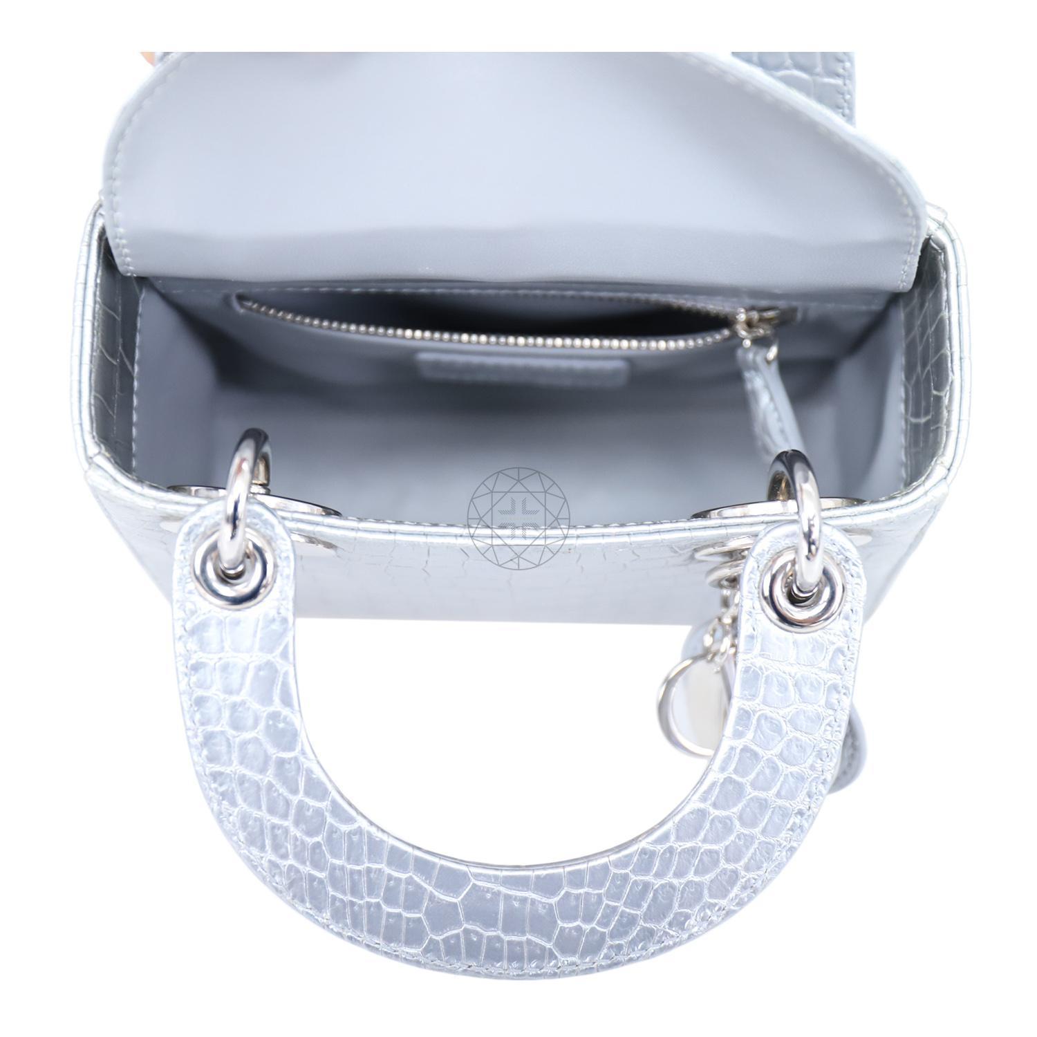 Dior Crocodile Mini Lady Dior Bag Grey
