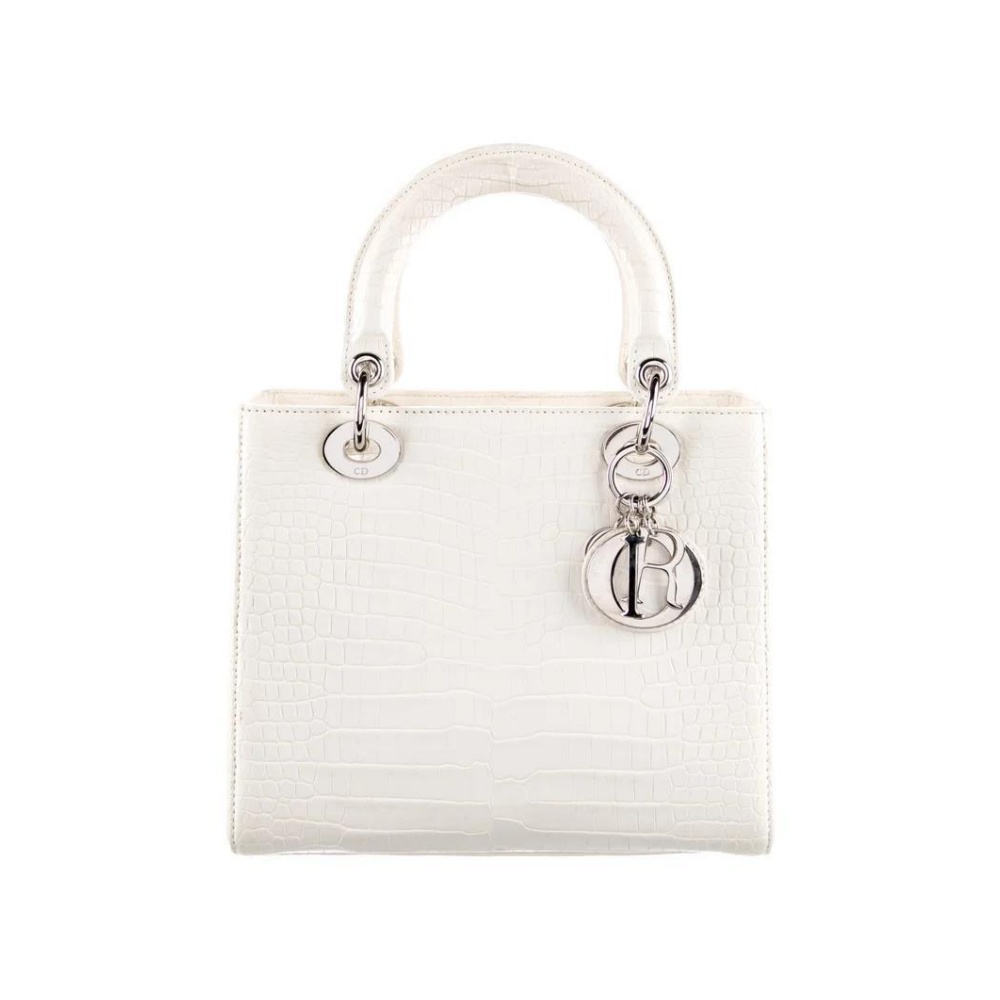 Have your very own Cinderella moment with this extremely unique Christian Dior Himalayan Crocodile Lady Dior Mini Handbag. Its sleek and distinct look portrays the princess look similar to how it was when the bag was first given to Princess Diana. This bag has managed to shape shift over the years while still keeping its essence in tact to fit the ideal look throughout the years. The metallic charms are inspired by the lucky charms Christian loved so much.