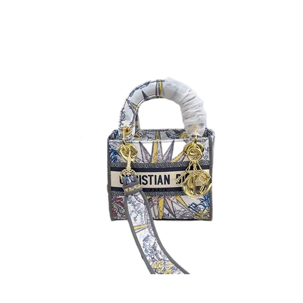 The Lady Dior is a structured handbag with geometric Cannage topstitching and a D.I.O.R. charm. It is made from a variety of materials, including lambskin, calfskin, and canvas. The bag is available in a variety of sizes, including small, medium, and large.