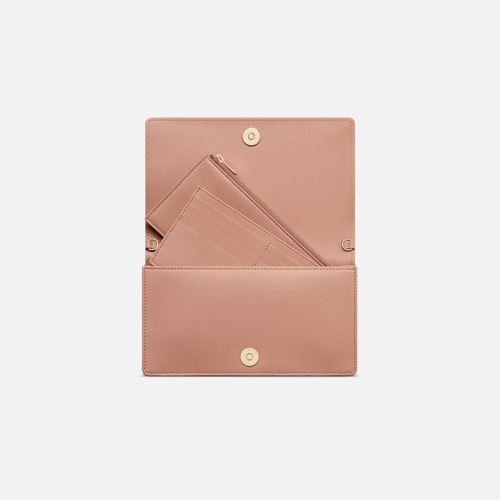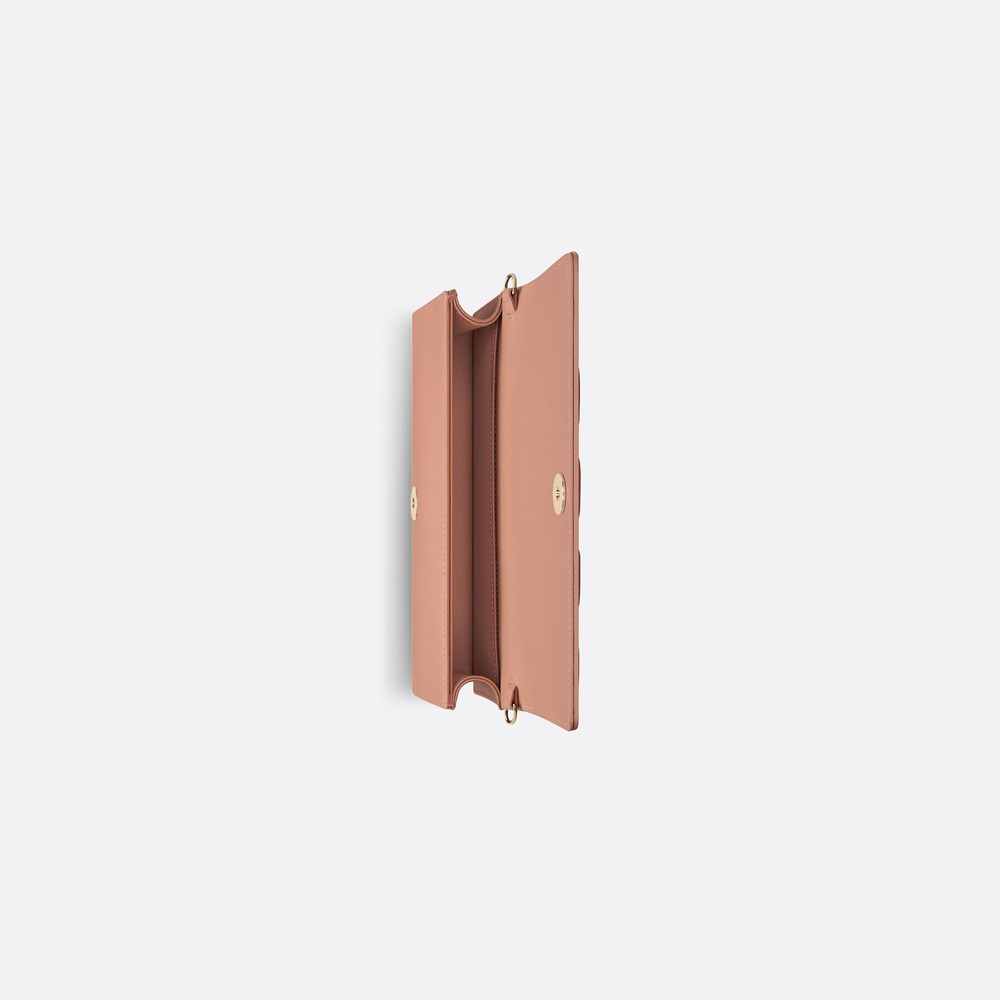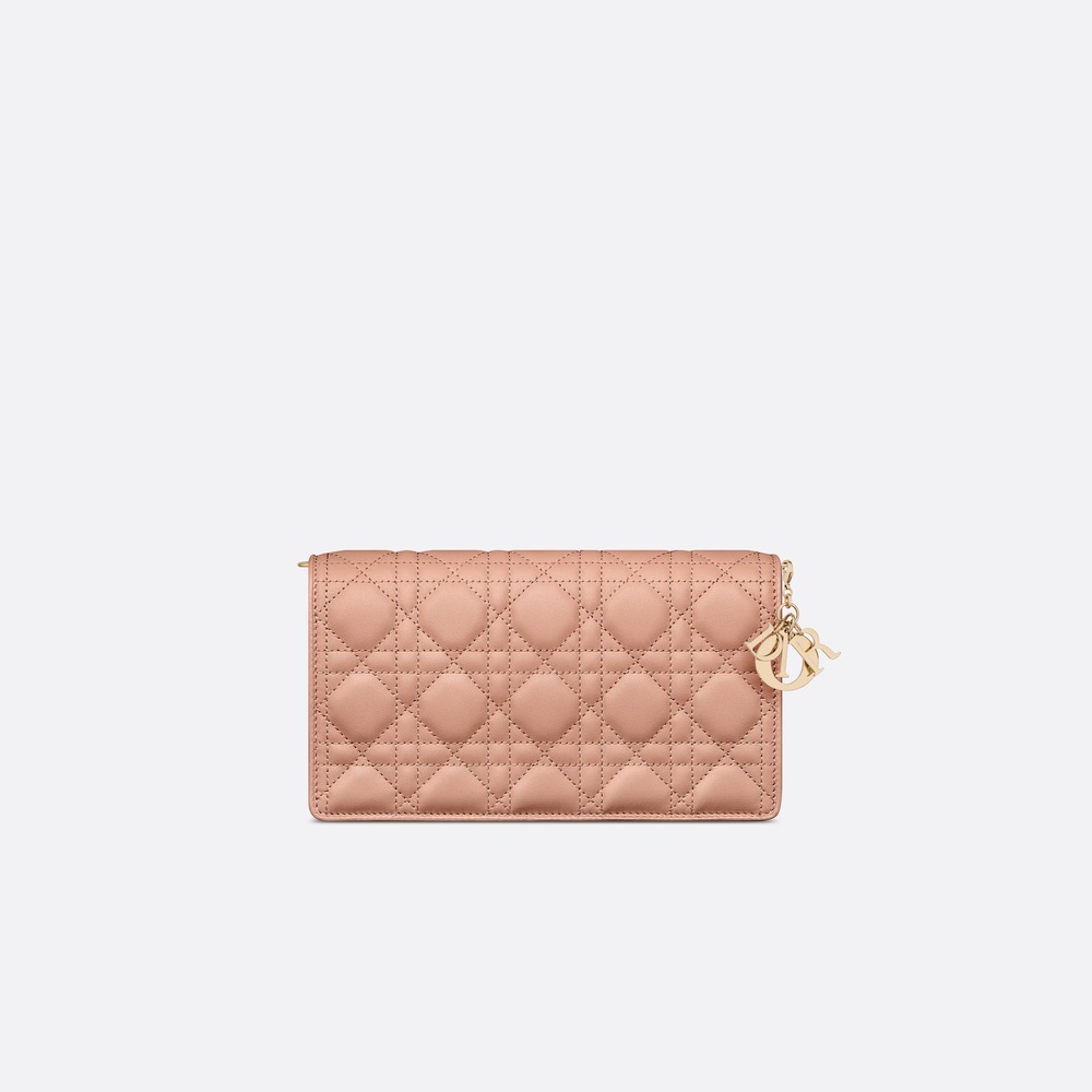 The Lady Dior pouch, crafted in stone gray lambskin, is distinguished by the emblematic Cannage topstitching and a detachable D.I.O.R. charm. This unique accessory may be worn with or without its chain strap and features two removable elements: a card holder and a zipped pouch. Each may be carried individually. The pouch will instantly stand out and pairs well with other pieces from the same line.