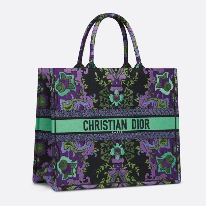 This Christian Dior book tote bag is the perfect accessory for any occasion. It is made of high-quality canvas and features a stylish floral print. The bag has a large capacity and can be used to carry books, groceries, or other items. It also has a white handle for easy carrying.