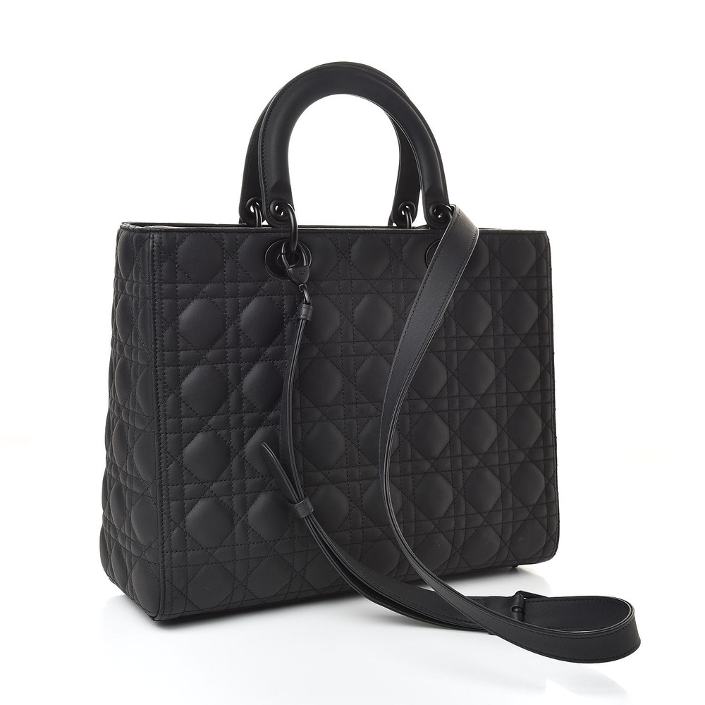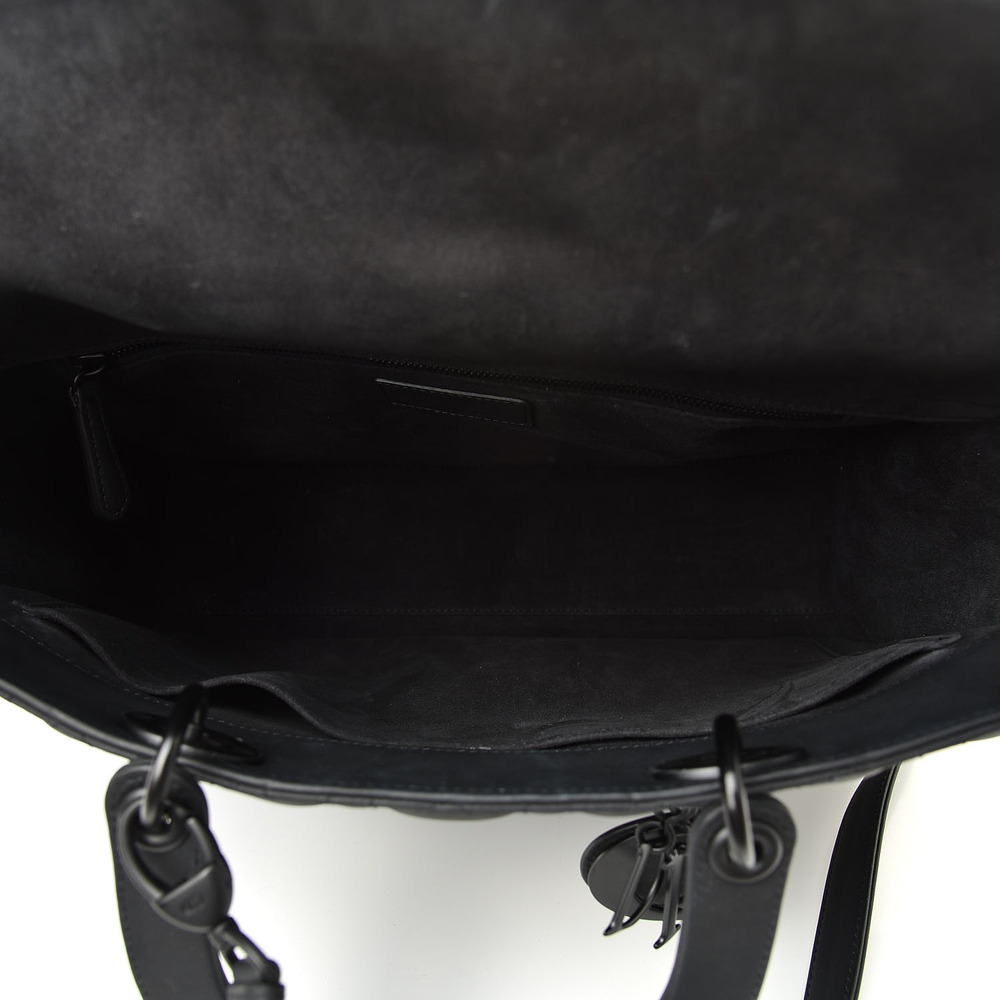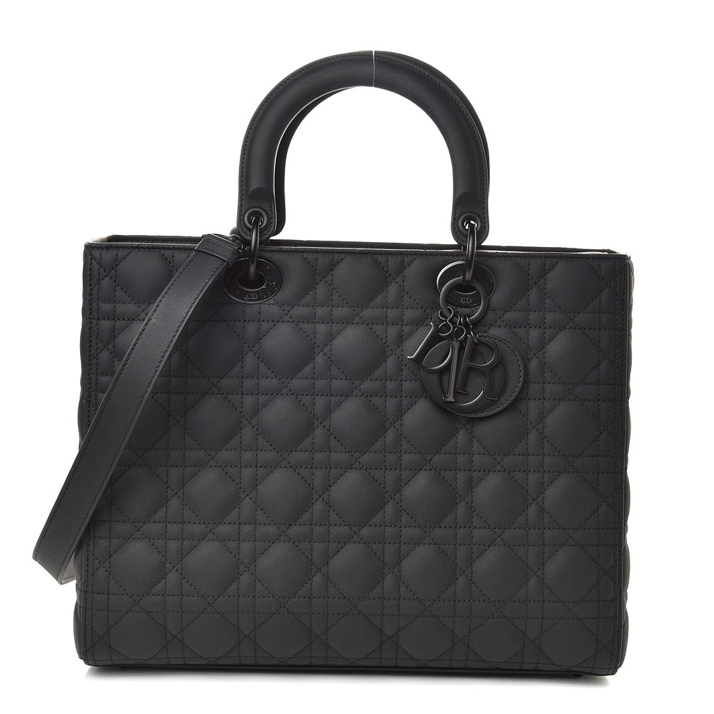 Maria Grazia Chiuri’s hallmark Dior Book Tote offers an original take on elegance. Crafted in black calfskin, the design showcases the Macrocannage motif and is embellished with pale gold-finish metal D.I.O.R charms on one of the handles. The cashmere leather interior reveals a zip pocket and patch pockets, ideal for organizing all the daily essentials. Featuring an adjustable and removable strap, the lightweight and practical medium tote is a prime example of Dior savoir-faire and may be carried by hand or worn over the shoulder.